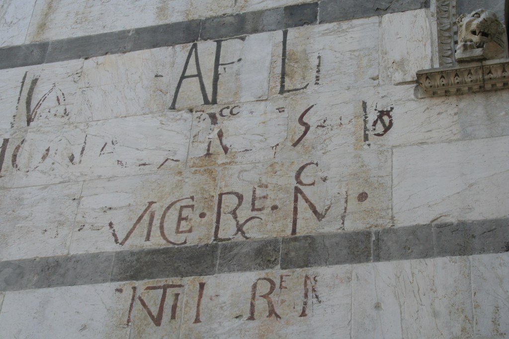 De kerk is mooi, maar het gaafst vond ik de inscripties op de voorgevel. Toen een collega de foto’s zag zij hij meteen “Het lijkt wel uit de DaVinci Code”. Daar heeft het niets mee te maken, het zijn inscripties uit de zeventiende eeuw over de verkiezing van de rector van de universiteit.