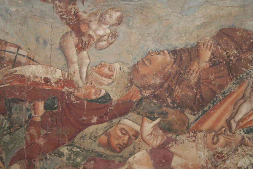 Wat mij betreft is dit het hoogtepunt van Campo dei Miracoli. Campo Santo is de ommuurde begraafplaats op het veld. Er schijnt een lading gewijde grond uit Golgotha te liggen dat daar in de 12e eeuw naartoe is gebracht, maar dat zal wel een legende zijn. Om de eerdere begraafplaats werd in de 13e eeuw een gebouw gebouwd. De graven liggen onder de arcades en het middenpad. In het gebouw staan sarcofagen en beelden en de muren waren helemaal bedekt met fresco’s. Veel van de fresco’s werden tijdens de Tweede Wereld Oorlog verwoest en daarna gelukkig gerestaureerd, want ze zijn echt prachtig.